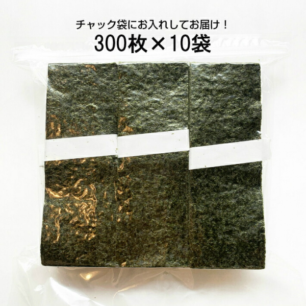 海苔 無酸処理 鹿児島県出水産 業務用おにぎり海苔「上」 1/3サイズ300枚(板のり100枚分)×10袋 送料無料 無添加 ギフト包装・のし対応不可